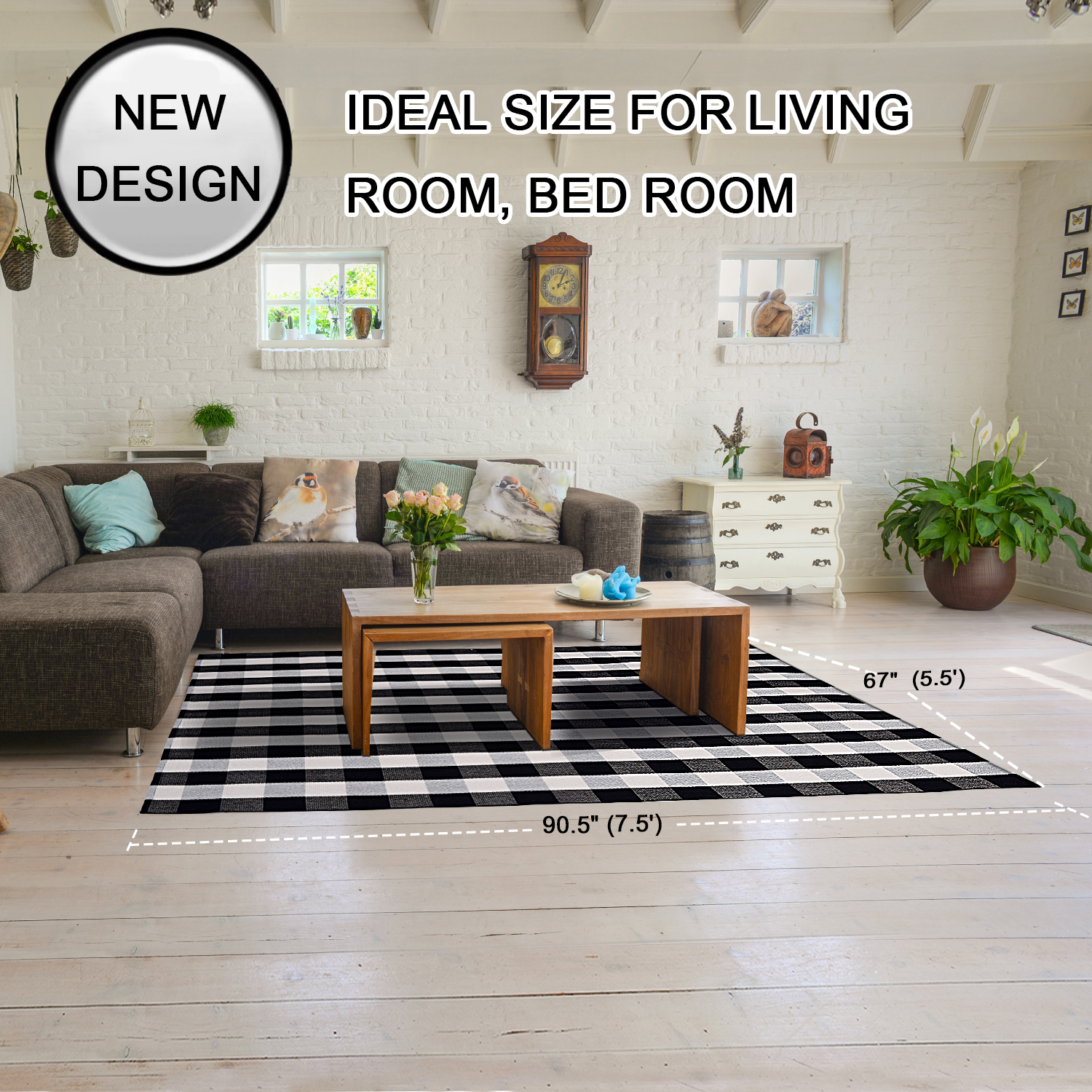 67"X90" (5.6X7.5) - Cotton Buffalo Plaid Check Area Rug ...