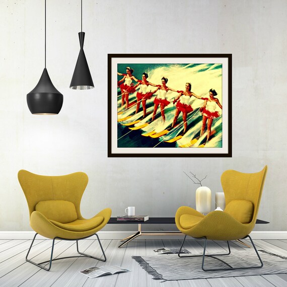 Retro Beach Art Water Ski Decor mid Century Modern ...